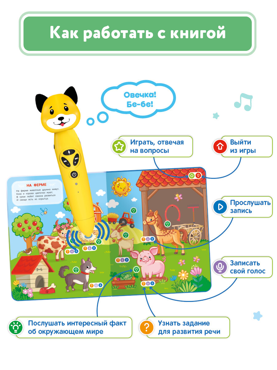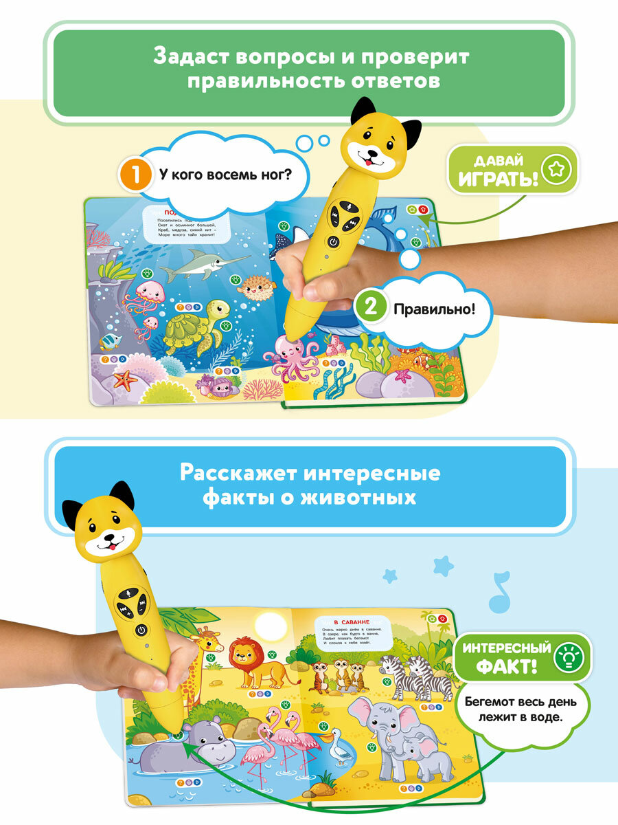 Серия логопедических игрушек – новинка , которая увлекает детей с рождения до школьного возраста . Музыкальная игрушка в виде забавной зверюшки – это одновременно безопасный прорезыватель , плейер с наушниками , диктофон , проигрыватель с возможностью записи и загрузки файлов и логопедический тренажёр . В комплекте сразу идут мини - книжка в подарок и уникальные многоразовые стикеры , которые клеятся на разные поверхности и умеют говорить ! Всего одна интерактивная игрушка – и столько восторга , веселья и пользы ! Это одновременно безопасный прорезыватель , плейер с наушниками , диктофон , проигрыватель с возможностью записи и загрузки файлов и логопедический тренажер . В комплекте сразу идут мини-книжка в подарок и уникальные многоразовые стикеры , которые клеятся на разные поверхности и умеют говорить ! Всего одна интерактивная развивающая игрушка – и столько восторга , веселья и пользы ! Давайте узнаем , что порадует вашего непоседу . Для малышей от 0 до года в развивающей игрушке есть ушки - грызунки для облегчения прорезывания зубок , в аудио плейер загружены успокаивающие мелодии , звуки природы и белый шум для новорожденных , чтобы они спокойно спали в кроватках самостоятельно . Детям от 1 года до 3 лет развивающая игрушка расскажет стишки и сказки , разучит скороговорки и распевки , научит делать весёлую лого гимнастику и удивит волшебными стикерами , стимулирует развитие речи . Вы и не заметите , как малыш полюбит заниматься ! Музыкальные детские интерактивные игрушки , логопедические игрушки для девочек , для мальчиков от 4 до 7 лет с дополнительными материалами помогут в игровой форме выучить цвета , освоить счёт , познакомиться с алфавитом , поиграть в логопедические игры , узнать много интересного обо всём на свете , поиграть в обучающие игры , научиться говорить четко и правильно . Занятия с Пандой , Тигренком или Собачкой – уникальный способ развития , обучения и развлечения . С помощью встроенной камеры интерактивные игрушки - зверюшки озвучивают весь контент в книгах , на карточках и стикерах : прикасайтесь к картинкам и ярким значкам , узнавайте удивительные факты , выполняйте задания , слушайте свои голоса и веселитесь ! Умные говорящие игрушки – прекрасный подарок на день рождения , подарок для девочек и мальчиков . Пусть ребенок выбирает своего любимого питомца – Панду Тичи , Собачку Булю или Тигренка Рыки , и вместе они будут без принуждения учиться , играть в полезные обучалки , рассматривать и читать книги . Несколько режимов на каждой странице помогут освоить материал легко и просто . Музыкальную игрушку можно подключить к ПК через USB и загружать с сайта производителя новые книги , журналы и карточки для развития логики , мелкой моторики и речи , чтобы дети росли и занимались с любимыми персонажами , а задания никогда не надоедали . 8 Гб памяти хватит и для загрузки своих аудиофайлов в формате MP3 ( например , любимых песенок ). Красивая безопасная игрушка очень проста в управлении , лёгкая в уходе , надежная . Выбирайте полезный развивающий подарок, чтобы надолго подарить ему радость открытий с весёлым и преданным другом .