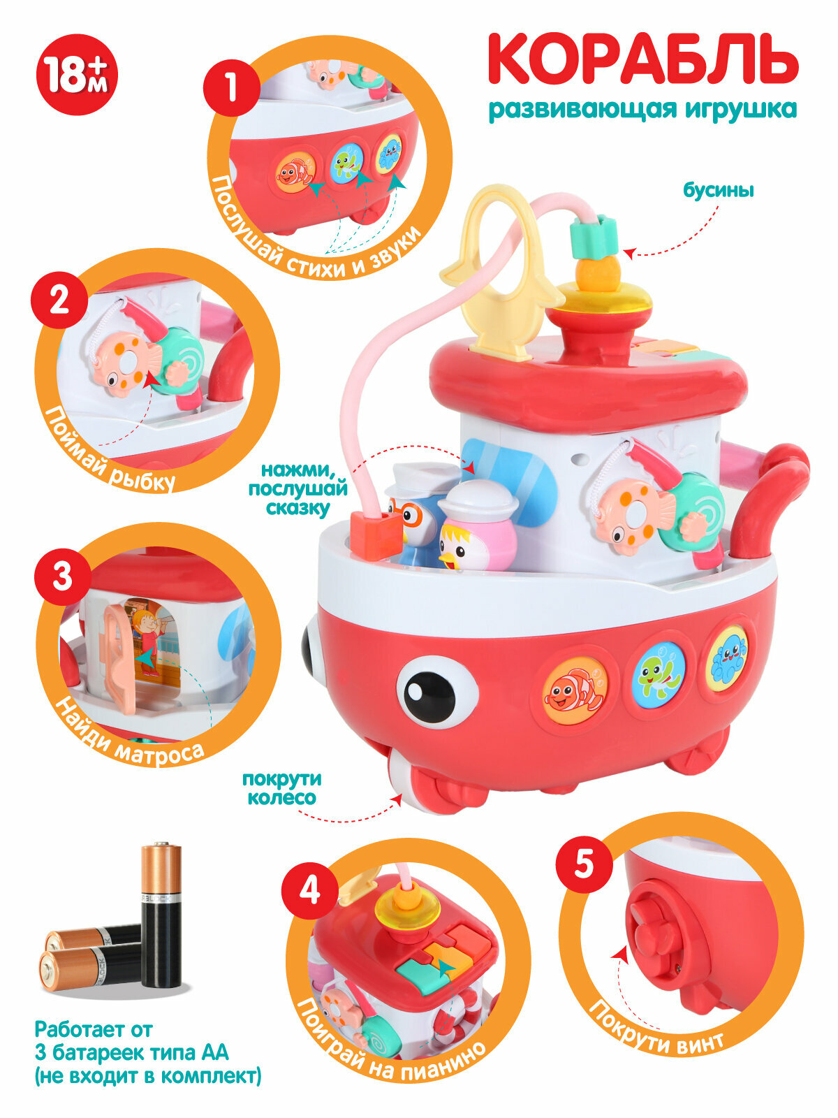• 2 матроса-утенка, воспроизводящие детские сказки при нажатии;