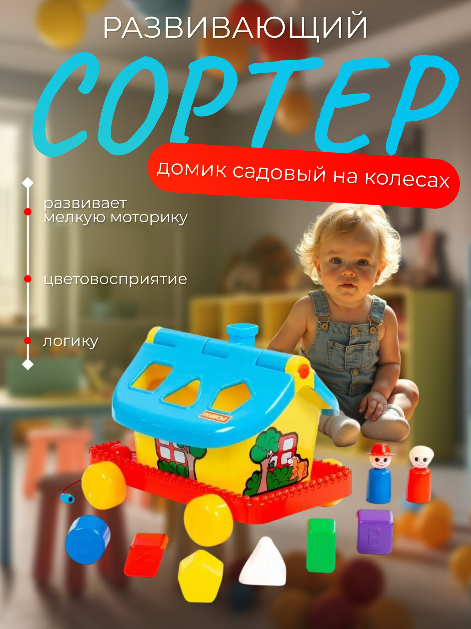 Развивающая игрушка сортер Полесье «Садовый домик» для малышей, на колесиках с веревочкой, (разноцветный) 56443: сравнение цен, характеристики, фото, актуальное наличие и цены.