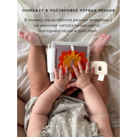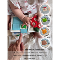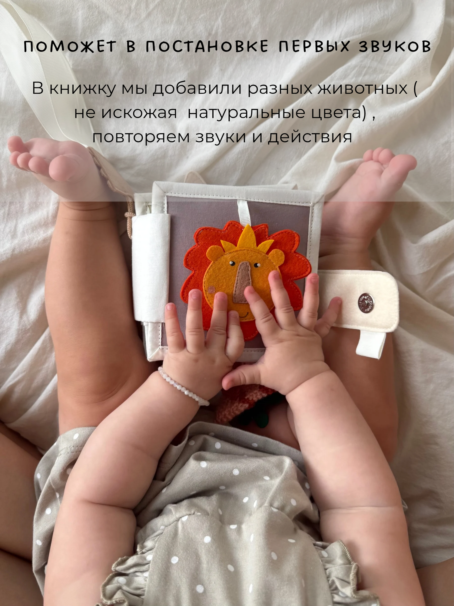 Простые и понятные сюжеты, имеющие настоящие цвета, способствующие повлиять на правильное развитие воображения об окружающем мире. Данный минибук был разработан для детей, чтобы помочь поставить первые звуки и слоги. Сочетание множества тактильных элементов и деталей с животными помогают книжке стать настоящим стимулятором по развитию мелкой моторики и речи. На развитие речи оказывает влияние мелкая моторика. Центры мозга, отвечающие за речь и мелкую моторику рук тесно взаимосвязаны, поэтому выполняя упражнения на развитие пальчиков, можно положительно влиять и на речь малыша. Предлагайте ребёнку щупать, перебирать, выполнять какие-либо действия с деталями книги. Съкмные элементы на веревочке, чтобы малыш не потерял их.