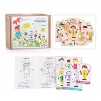 Купить Развивающая логическая игра-пазл Краснокамская игрушка «Профессии», собери картинку, набор из 30 деревянных деталей, 10 картинок + книжка с доставкой по всей России.