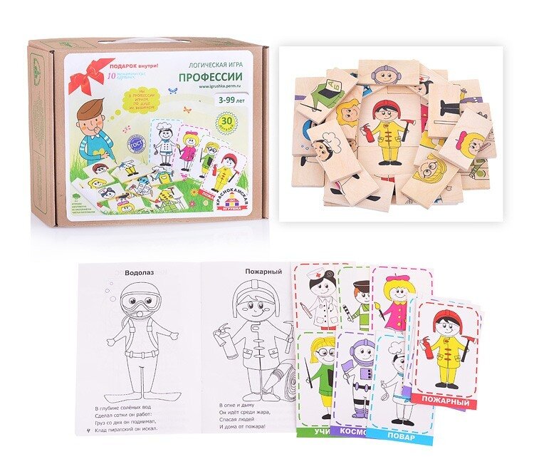 Развивающая логическая игра-пазл Краснокамская игрушка «Профессии», собери картинку, набор из 30 деревянных деталей, 10 картинок + книжка: сравнение цен, характеристики, фото, актуальное наличие и цены.