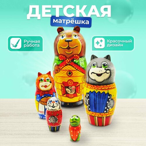 Купить Матрешка деревянная детская развивающая игрушка для детей сортер сказка Теремок 5 мест 15 см Орнамент с доставкой по всей России.