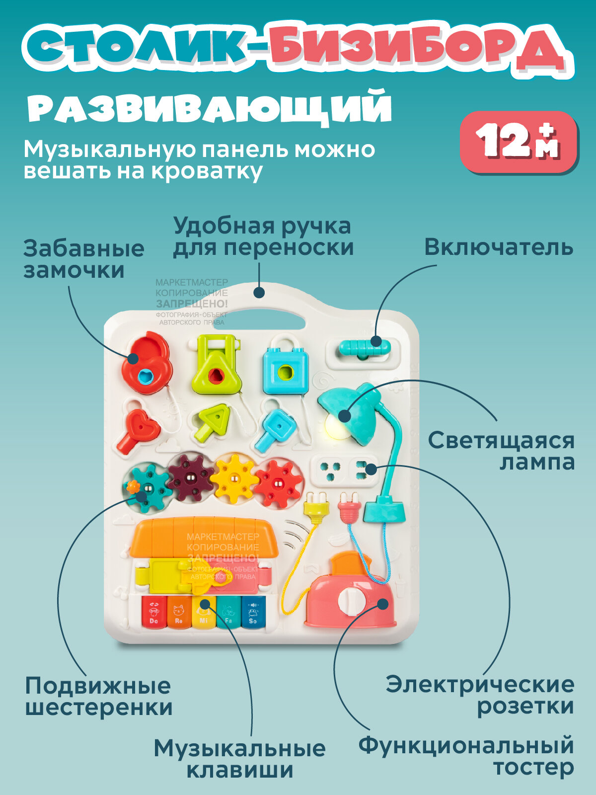 Купить Развивающая музыкальная игрушка 2в1, игровой центр, столик, бизиборд, музыкальная панель на кроватку, звук, JB0334365 с доставкой по всей России.
