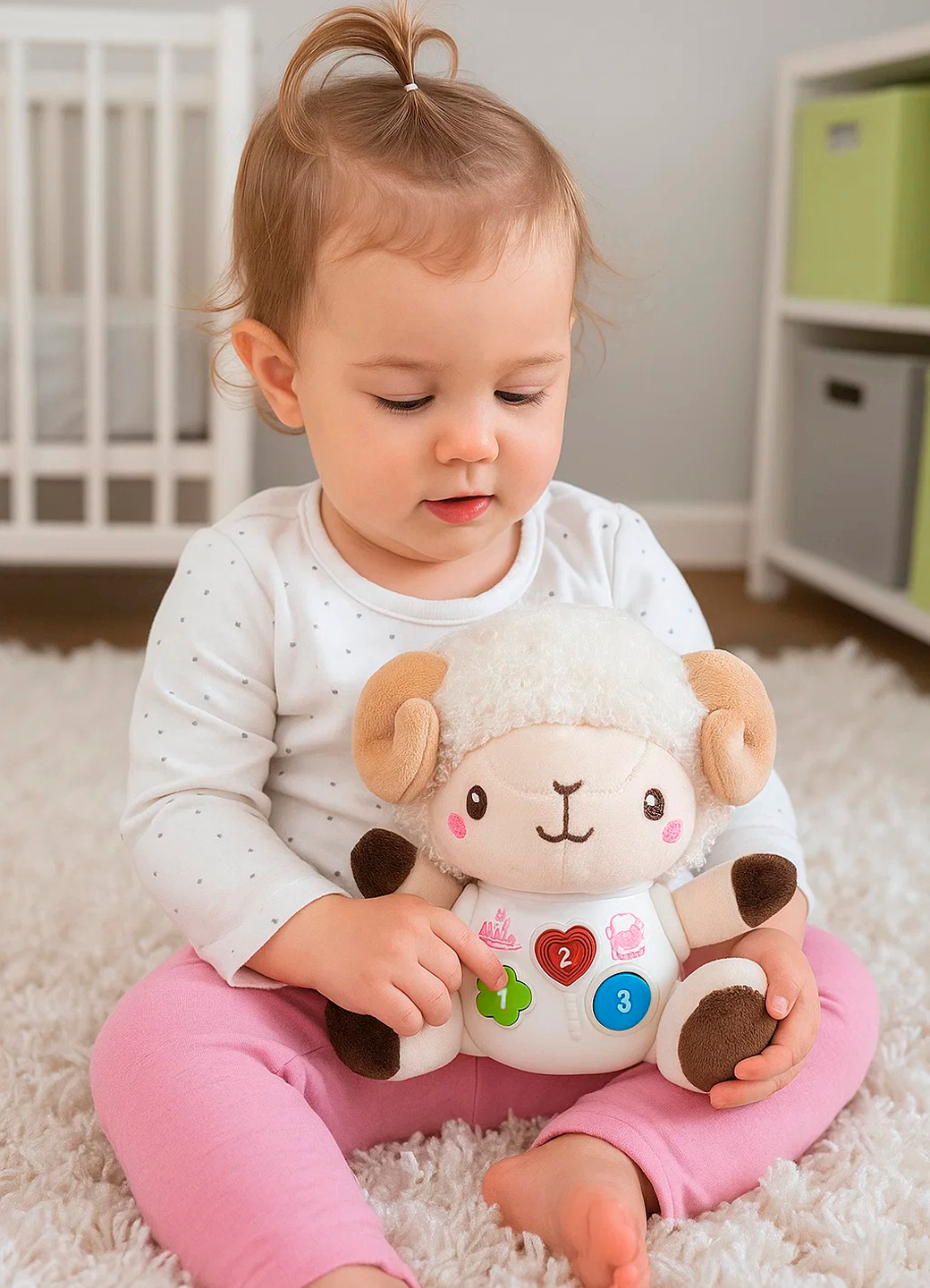 Купить Развивающая мягкая игрушка Барашек для малышей, звуки природы/потешки/мелодии В. Шаинского, свет, звук, JB0334411 с доставкой по всей России.