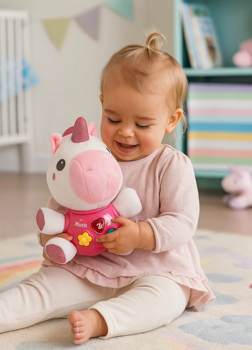 Купить Развивающая мягкая игрушка Единорог для малышей, звуки природы/потешки/мелодии В. Шаинского, свет, звук, JB0334410 с доставкой по всей России.