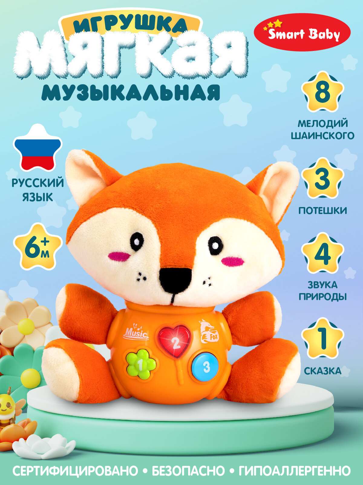 Развивающая мягкая игрушка Лиса для малышей звуки природы/ потешки/ мелодии В. Шаинского, свет, звук, JB0334406: сравнение цен, характеристики, фото, актуальное наличие и цены.
