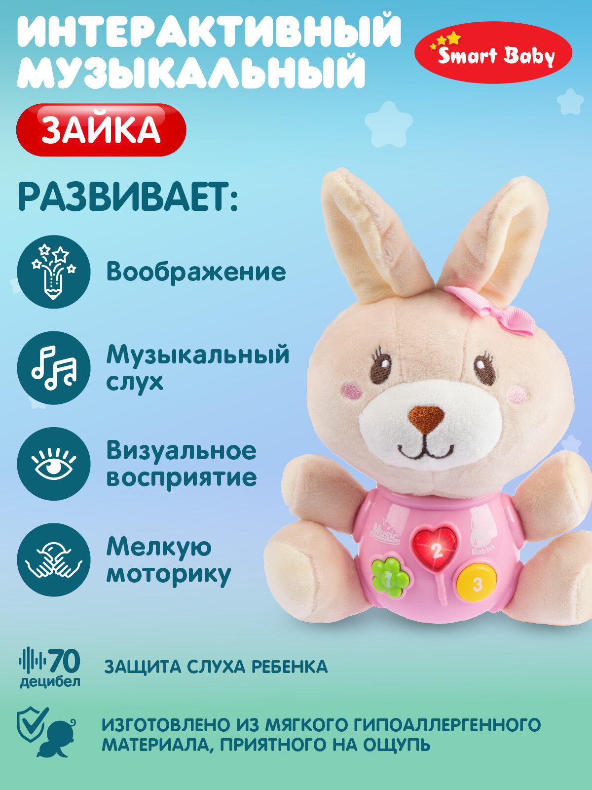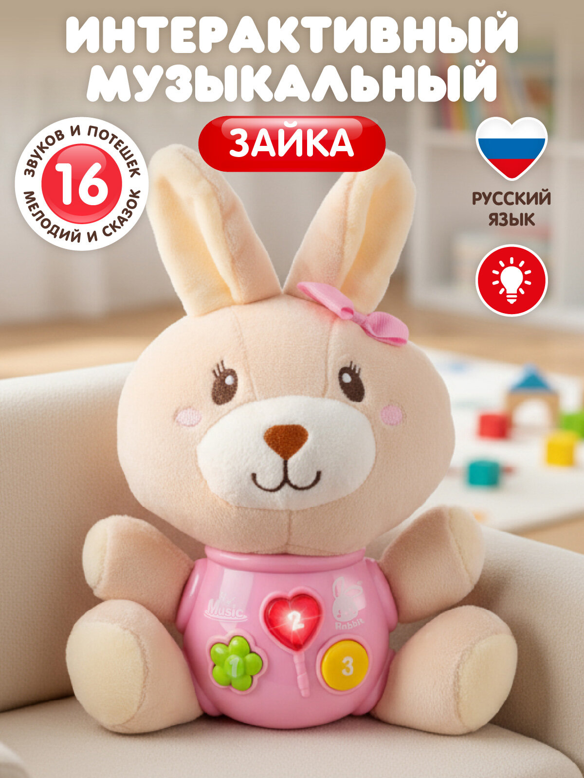 Развивающая мягкая игрушка Зайка для малышей, звуки природы/потешки/мелодии В. Шаинского, свет, звук, JB0334408: сравнение цен, характеристики, фото, актуальное наличие и цены.