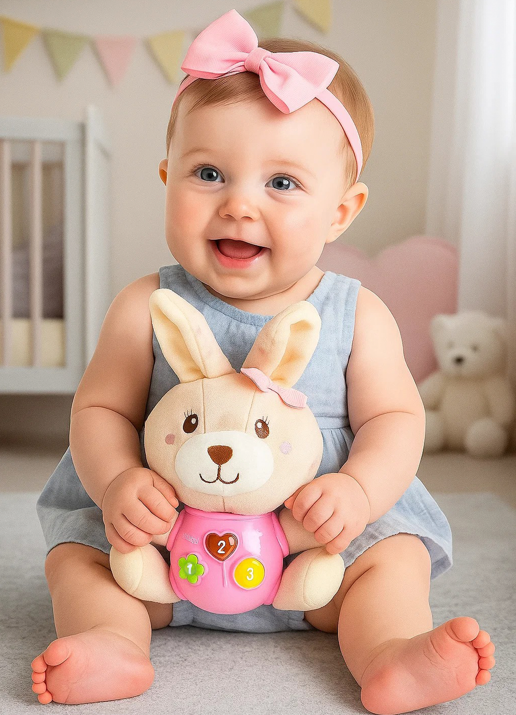 Купить Развивающая мягкая игрушка Зайка для малышей, звуки природы/потешки/мелодии В. Шаинского, свет, звук, JB0334408 с доставкой по всей России.
