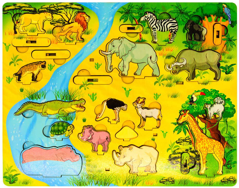 Развивающая объемная рамка-вкладыш «Водопой на Лимпопо», деревянный 3D пазл для малышей: сравнение цен, характеристики, фото, актуальное наличие и цены.