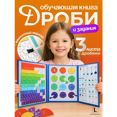 Магнитная книга "Дроби и проценты с заданиями" - идеальное решение для установления ясного представления о таких абстрактных понятиях, как дроби и проценты! С помощью этого увлекательного интерактивного пособия ваш ребенок с легкостью освоит дроби и сможет опираться в своих вычислениях на яркие запомнившиеся образы. Наш магнитный блокнот - это удобное и практичное дополнение к игре. С его помощью ваш ребенок научится зрительно различать дроби и выполнять различные задания и решать примеры. Набор состоит из карточек-магнитов с различными дробями, что позволяет визуализировать математические операции. Детям будет интересно составлять различные примеры и наглядно осваивать арифметические операции на магнитной доске. Игра "Магнитные Дроби" отличается высоким качеством материалов, что гарантирует долгий срок службы игрушки. Благодаря ярким и привлекательным картинкам на магнитах, обучение станет веселым и увлекательным процессом. Этот набор счетных материалов подарит вашему ребенку возможность учиться считать, развивать логическое мышление и творческие навыки, а также научит применять полученные знания на практике. Не упустите возможность воспользоваться этой игрой для обучения вашего ребенка, чтобы обучение математике стало интересным и увлекательным процессом! Игра подойдет не только как подарок ребенку, но и также отличным обучающим пособием для дефектологов, логопедов, учителей.