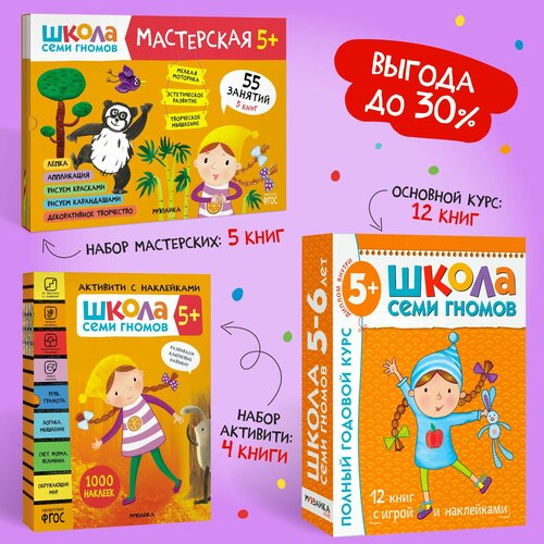 В большой комплект «Школа Семи Гномов 5+» входит всё необходимое для общего развития ребёнка от 5 до 6 лет, пополнения словарного запаса, тренировки сенсорики, мелкой моторики, мыслительной и умственной деятельности, а также памяти и фантазии. Школа Семи Гномов – это система, а не набор книг. Она выстроена таким образом, чтобы ребёнок получил необходимые знания в правильный момент. Поэтому все книги в Школе Семи Гномов имеют четкую возрастную адресацию и разработаны строго с учетом возрастных возможностей ребенка. Но самое важное, чтобы занятия с ребенком давали результат и приносили радость. Поэтому все задания выстроены от простого к сложному и следуют принципу «развитие через игру». Заниматься с ребенком может любой взрослый, специальных знаний и опыта не требуется. Родительская страничка в каждой книге подскажет, что, как и почему нужно развивать в данном возрасте.