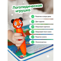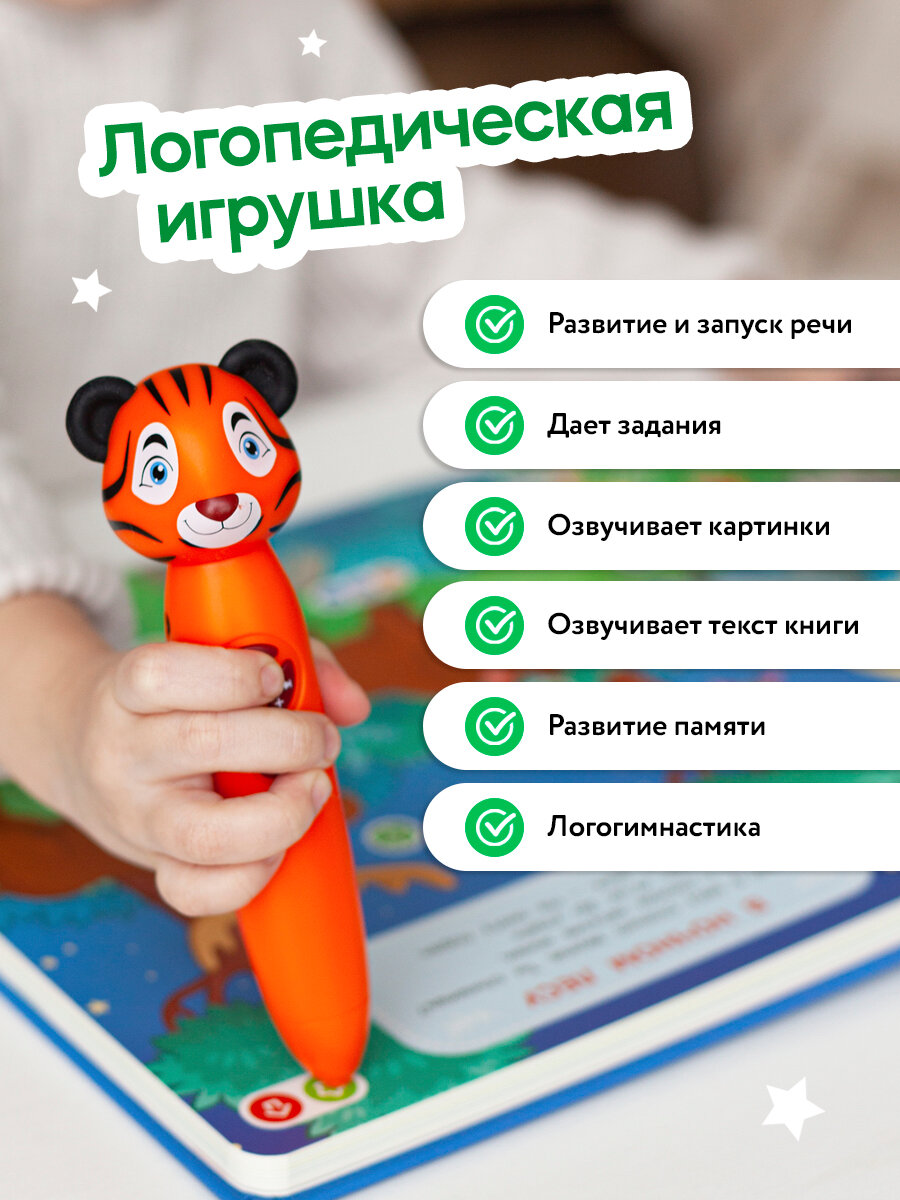 В этот полный комплект входит : интерактивная логопедическая игрушка Тигренок Рыки, 5 книг : Животные , Моя Азбука, Цифры, Говорю правильно (1 часть), Говорю правильно (2 часть), карточки-подражалки . С помощью встроенной камеры игрушки зверюшки озвучивают весь контент в книгах , на карточках : прикасайтесь к картинкам и ярким значкам , узнавайте удивительные факты , выполняйте задания , слушайте свои голоса и веселитесь ! 8 Гб памяти хватит и для загрузки своих аудиофайлов в формате MP3 ( например , любимые песни , сказки ). это одновременно безопасный прорезыватель , плейер с наушниками , диктофон , проигрыватель с возможностью записи и загрузки файлов и логопедический тренажер . В комплекте сразу идут мини-книжка в подарок и уникальные многоразовые стикеры , которые клеятся на разные поверхности и умеют говорить ! Всего одна интерактивная развивающая игрушка – и столько восторга , веселья и пользы ! Давайте узнаем , что порадует вашего непоседу . Для малышей от 0 до года в развивающей игрушке есть ушки - грызунки для облегчения прорезывания зубок , в аудио плейер загружены успокаивающие мелодии , звуки природы и белый шум для новорожденных , чтобы они спокойно спали в кроватках самостоятельно . Детям от 1 года до 3 лет развивающая игрушка расскажет стишки и сказки , разучит скороговорки и распевки , научит делать весёлую лого гимнастику и удивит волшебными стикерами , стимулирует развитие речи . Вы и не заметите , как малыш полюбит заниматься ! Музыкальные детские интерактивные игрушки , логопедические игрушки для девочек , для мальчиков от 4 до 7 лет с дополнительными материалами помогут в игровой форме выучить цвета , освоить счёт , познакомиться с алфавитом , поиграть в логопедические игры , узнать много интересного обо всём на свете , поиграть в обучающие игры , научиться говорить четко и правильно . Занятия с Пандой , Тигренком или Собачкой – уникальный способ развития , обучения и развлечения . С помощью встроенной камеры интерактивные игрушки - зверюшки озвучивают весь контент в книгах , на карточках и стикерах : прикасайтесь к картинкам и ярким значкам , узнавайте удивительные факты , выполняйте задания , слушайте свои голоса и веселитесь ! Умные говорящие игрушки – прекрасный подарок на день рождения , подарок для девочек и мальчиков . Пусть ребенок выбирает своего любимого питомца – Панду Тичи , Собачку Булю или Тигренка Рыки , и вместе они будут без принуждения учиться , играть в полезные обучалки , рассматривать и читать книги . Несколько режимов на каждой странице помогут освоить материал легко и просто . Музыкальную игрушку можно подключить к ПК через USB и загружать с сайта производителя новые книги , журналы и карточки для развития логики , мелкой моторики и речи , чтобы дети росли и занимались с любимыми персонажами , а задания никогда не надоедали . 8 Гб памяти хватит и для загрузки своих аудиофайлов в формате MP3 ( например , любимых песенок ). Красивая безопасная игрушка очень проста в управлении , лёгкая в уходе , надежная . Выбирайте полезный развивающий подарок, чтобы надолго подарить ему радость открытий с весёлым и преданным другом .