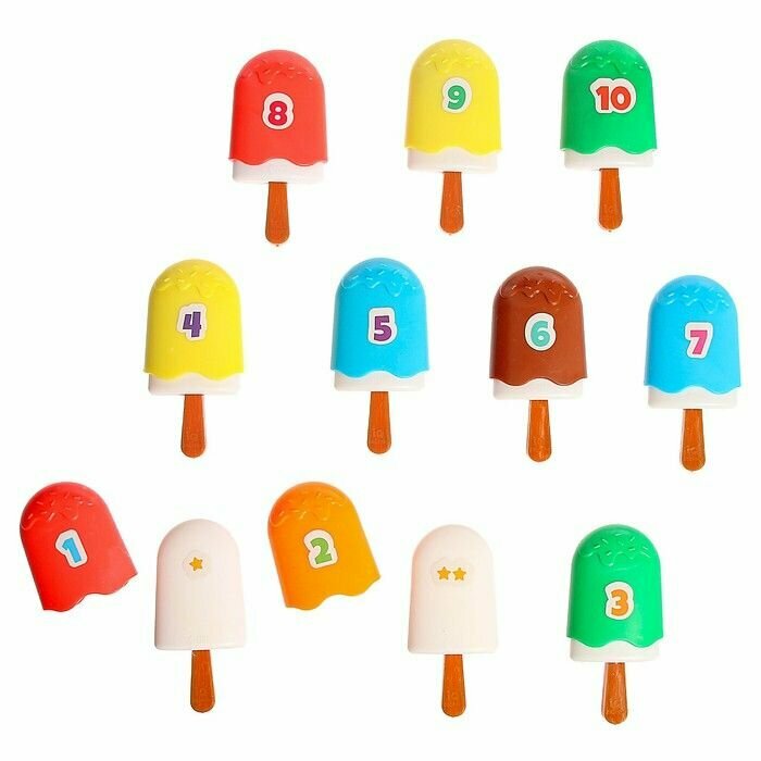 Купить Развивающий игровой набор «Чудо эскимо. Учим цифры» для малышей, учимся считать, развиваем внимательность, логику и мелкую моторику, в наборе 10 эскимо с наклейками + задания с доставкой по всей России.