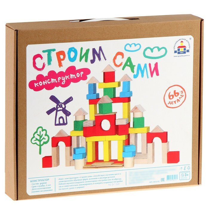 Купить Конструктор деревянный окрашенный (66 деталей) с доставкой по всей России.