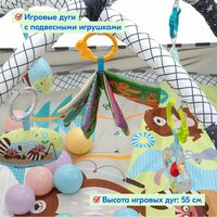 | Дополнительная информация | высота бортика 18 см; высота дуги: 55 см; уход: мягкие части коврика можно стирать в машине и сушить на воздухе, пластиковые части — протирать влажной тканью; рисунки на ковриках и формы игрушек могут незначительно отличаться от представленных на фотографиях |