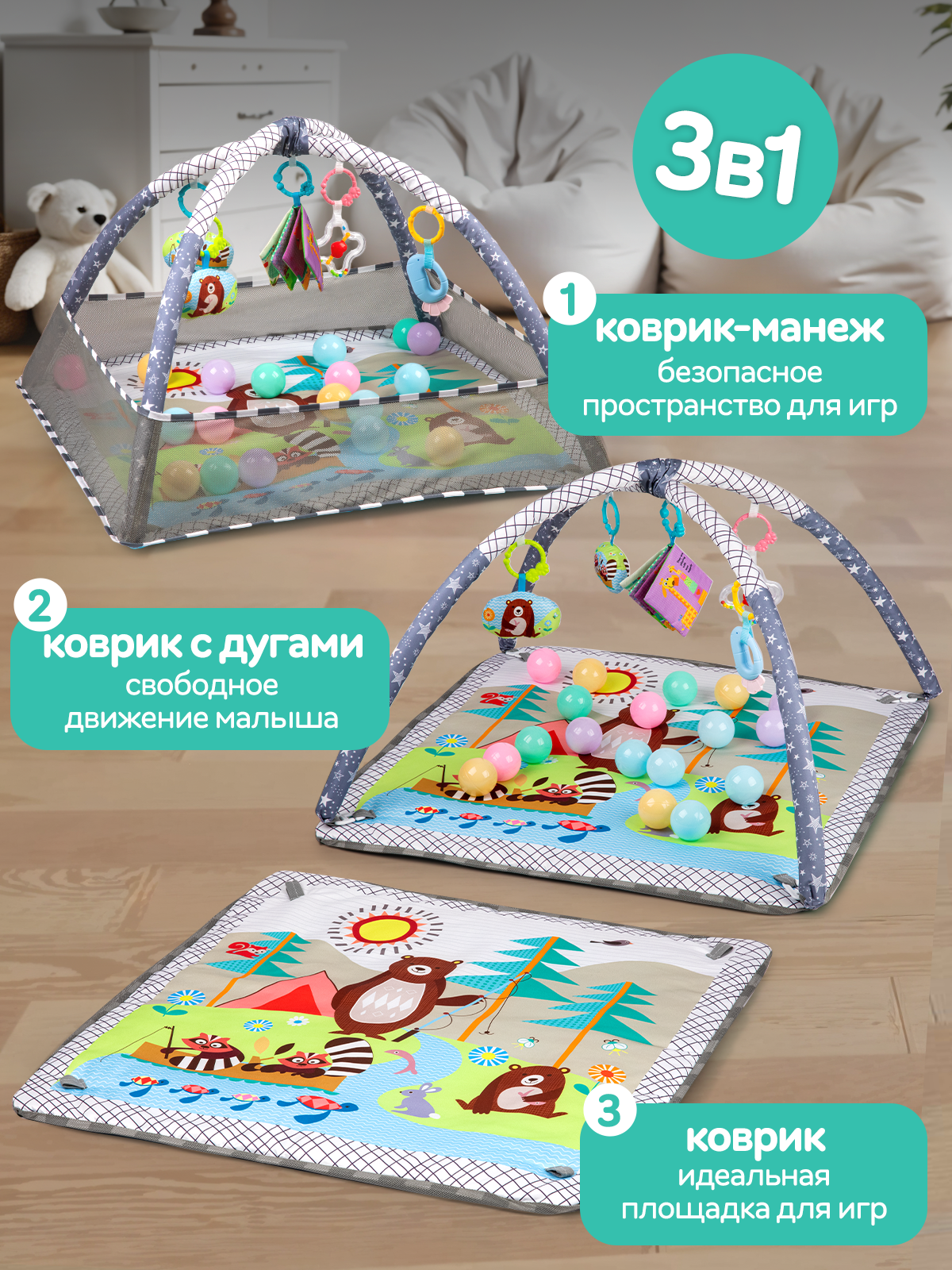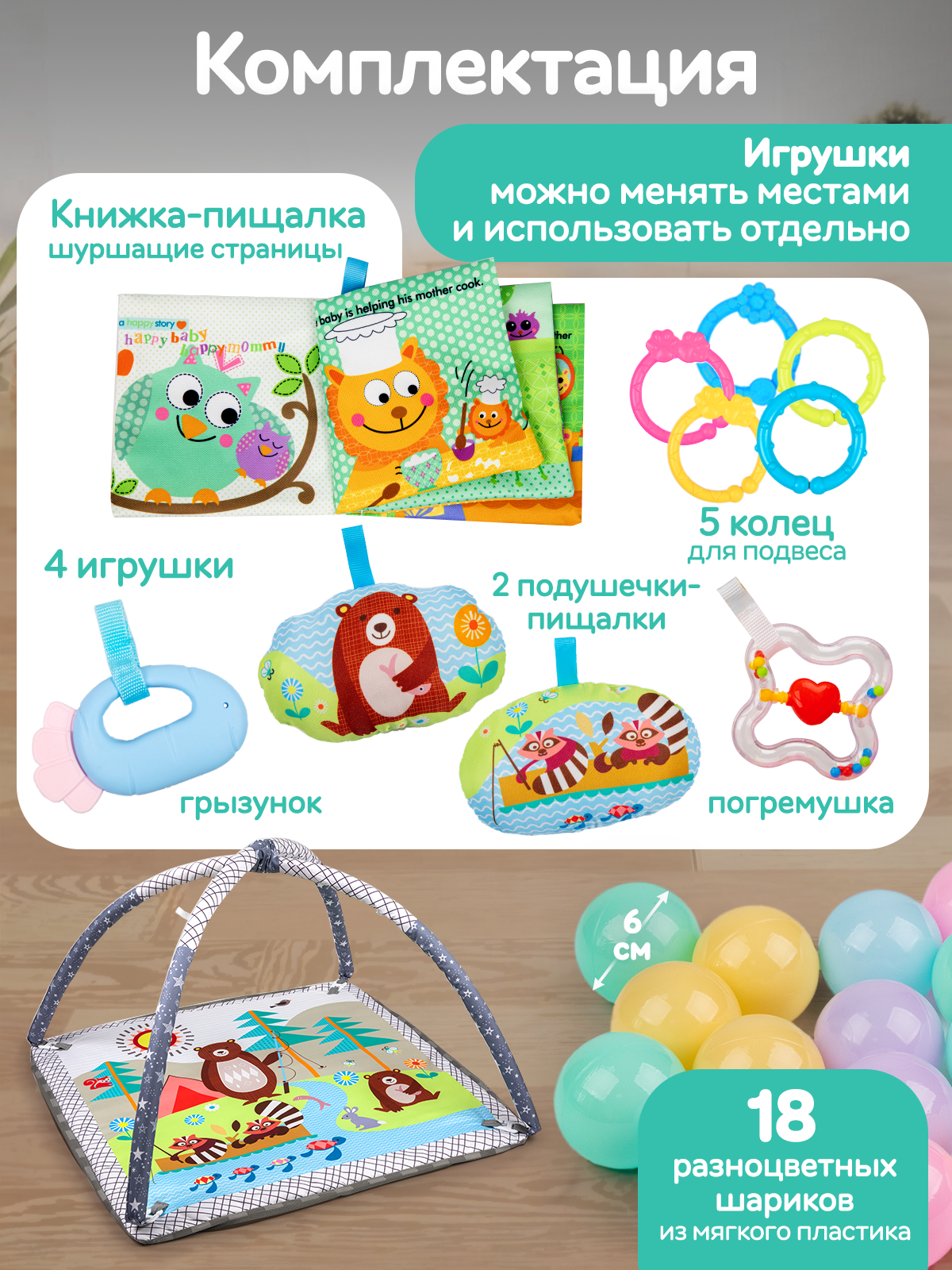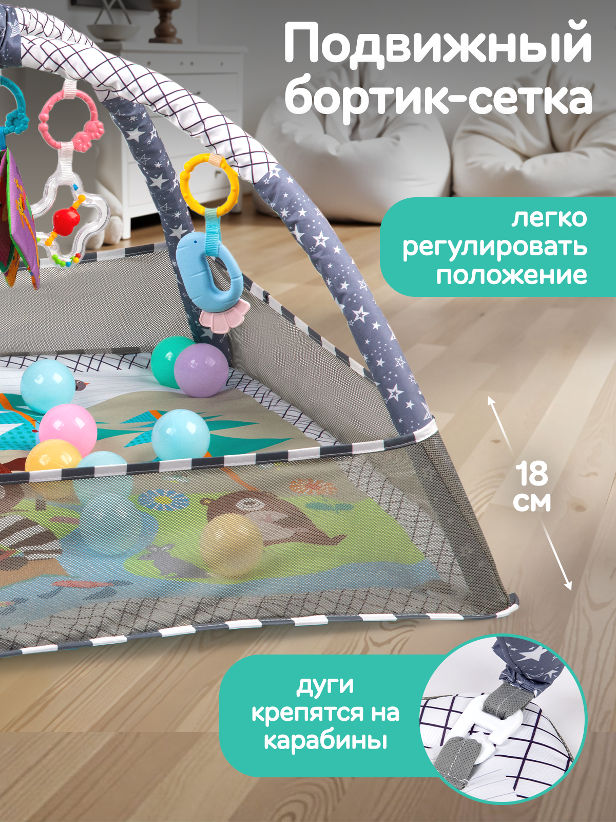 Купить Развивающий коврик для малышей, манеж детский игровой, 18 шариков, 5 подвесных игрушек с доставкой по всей России.