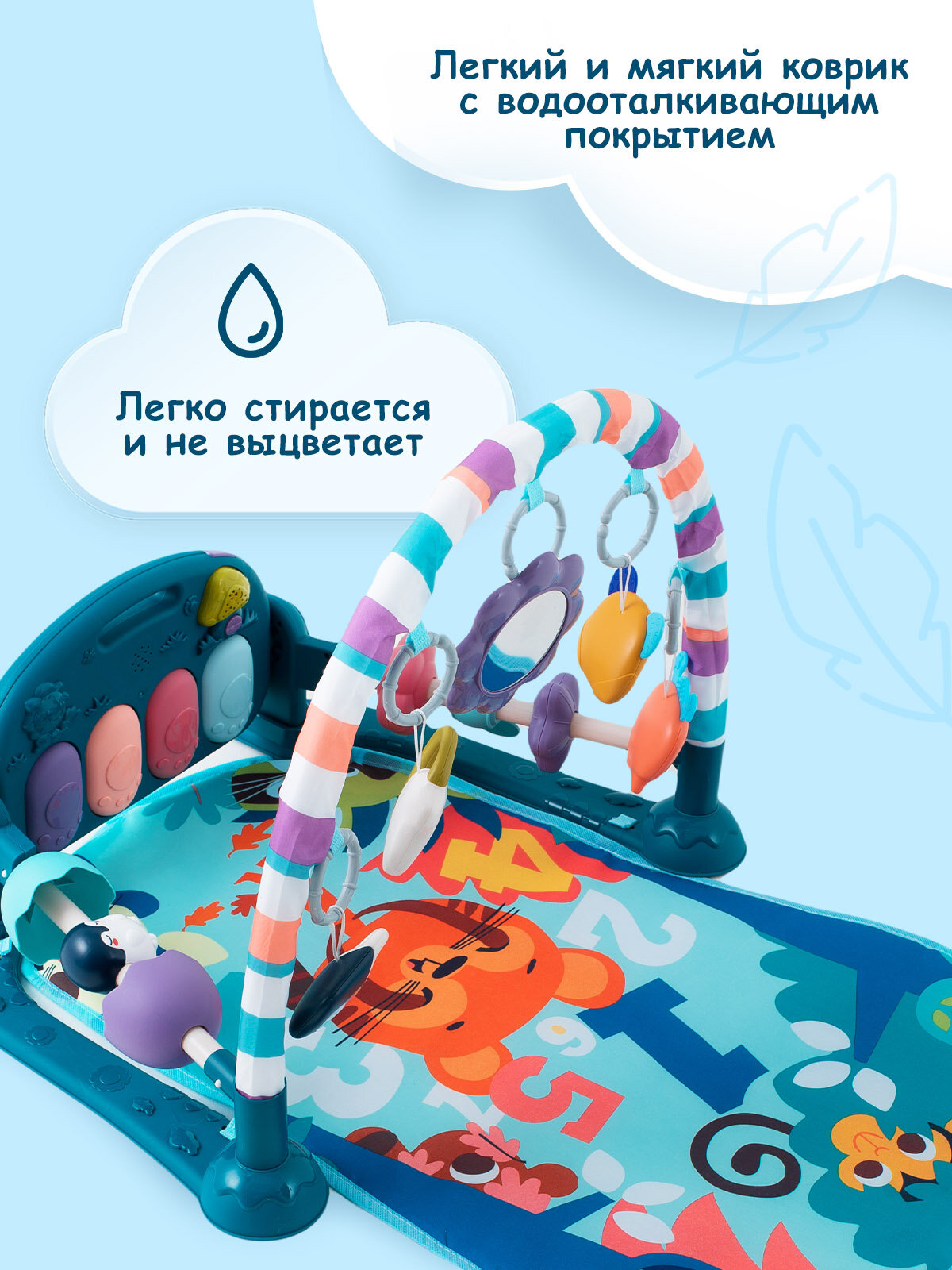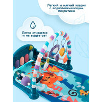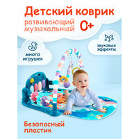 Развивающий коврик с пианино для малыша от бренда Belursus - это идеальный подарок для новорожденного и ребенка до 36 месяцев. Музыкальный коврик из нетканого материала и хлопкового наполнителя воздухопроницаемый и комфортный. Малыш будет на нем лежать, а затем переворачиваться и сидеть, и, в конце концов, ползать и вставать. Развивающий аксессуар оборудован съемной дугой и боковыми ограждениями с игрушками (водная чашка - погремушка, чайник - погремушка, телевизор - погремушка и часы - погремушка, зеркало - цветок), также музыкальной панелью с электронным пианино и проектором звездного неба. Коврик для новорожденных украшен яркими рисунками и картинками. Интерактивный коврик представлен в двух цветах: розовом и синем - подойдет для девочек и мальчиков. Коврик игровой - развивайка выполнен в оптимальном для маленького ребенка размере: ширина - 60 см, длина - 80 см, высота - 40 см. Игровой коврик с пианино будет удобен для детей разного возраста и уровня развития. Его можно использовать как коврик для пола, игровой коврик или даже кровать! Каждая деталь комплекта создана для того, чтобы улучшить впечатления вашего ребенка: это и шуршащие элементы - шуршалки, дуга с игрушками погремушками и светящиеся детали, тактильные впечатления от игрушек с фактурными выпуклостями и стимулирующие сенсорное восприятие и внимание изделия. Мягкий тканевый ковер изготовлен из высококачественных материалов, которые не выцветают и не рвутся со временем - его даже можно стирать в машинке! Обучающий и развивающий комплекс с зеркальцем и подсветкой, интересными игрушками и проекцией звездного неба позволит занять младенца и малыша постарше надолго, а маме в это время отдохнуть. Игровой центр бизиборд подарит вашему малышу целый мир впечатлений, подойдет для интересных занятий, стимулирует необходимость переворачивания и ползания, вставания на ножки с помощью родителей. Развивающий центр развивающая панель в форме игрового коврика станет заметной деталью комнаты ребенка, подарит малышу радость игры, станет полезным новогодним подарком для развития и хорошего настроения, для первых упражнений, отдыха, развлечения и обучения. Игровой коврик в красивой подарочной упаковке - приятный сюрприз для любого праздника: для Нового год (НГ) или Рождества, дня рождения или 8 марта, 23 февраля, подарок для новорожденного и просто так без повода. Развивающий коврик с пианино работает от трех батареек АА (не входят в комплект), поэтому вы можете использовать его где угодно! У нас есть акции и распродажи, вы можете купить наши товары в подарок со скидкой!
