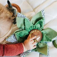 Используйте увлекательные занятия и фактуры, чтобы побудить вашего ребенка проводить больше времени на животе, укрепляя мышцы в подготовке к будущим этапам развития. Обратите внимание вашего ребенка на различные фактуры шуршащей игрушки-растения или позвольте ему посмотреть на свое отражение в зеркале!
