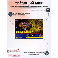 Развивающий набор «Звездный мир» включает детский телескоп с 60-кратным увеличением и предназначен для наблюдений за звездным небом и космическими объектами. В комплект входят также две книги с описанием опытов, подробная карта созвездий и сборная модель Солнечной системы. Рекомендуемый возраст: от 10 лет. Назначение: С помощью набора «Звездный мир 80 опытов» вы узнаете, как устроена Солнечная система, и сможете наблюдать за множеством объектов во Вселенной: звёздами, кометами, спутниками и планетами. Границы обозримого мира отодвинутся в бесконечность. Научный набор позволяет собрать модель Солнечной системы, а также провести 80 астрономических опытов и наблюдений с использованием телескопа. Чему научится ребенок? Сколько весит наша планета? Как можно взвесить Луну? Какое расстояние от Земли до Солнца? Набор «Звёздный мир» поможет ответить на эти и другие вопросы. Ребёнок научится различать созвездия, сможет провести ряд экспериментов по изучению Солнца, Земли и Луны, соберет телескоп, понаблюдает за планетами и смоделирует Солнечную систему.