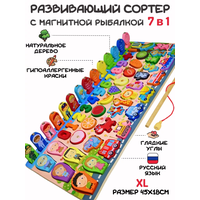 Развивающий сортер монтессори для малышей магнитный, деревянный, 7в1