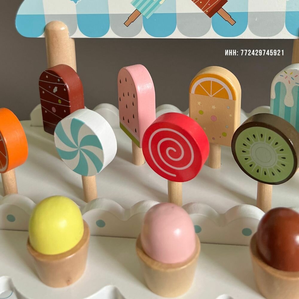 Купить Развивающий сюжетно-ролевой деревянный набор Киоск-Бар Мороженого / Игрушки Монтессори малышам с доставкой по всей России.