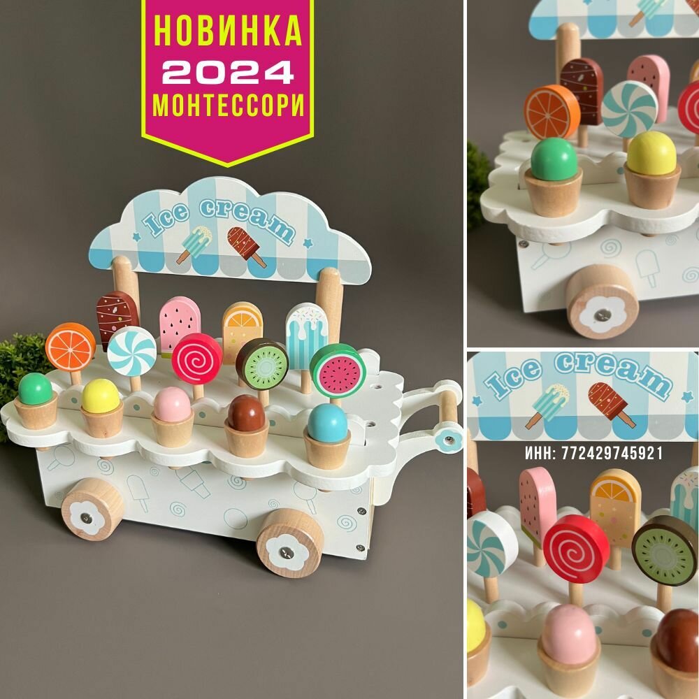 Развивающий сюжетно-ролевой деревянный набор Киоск-Бар Мороженого / Игрушки Монтессори малышам: сравнение цен, характеристики, фото, актуальное наличие и цены.