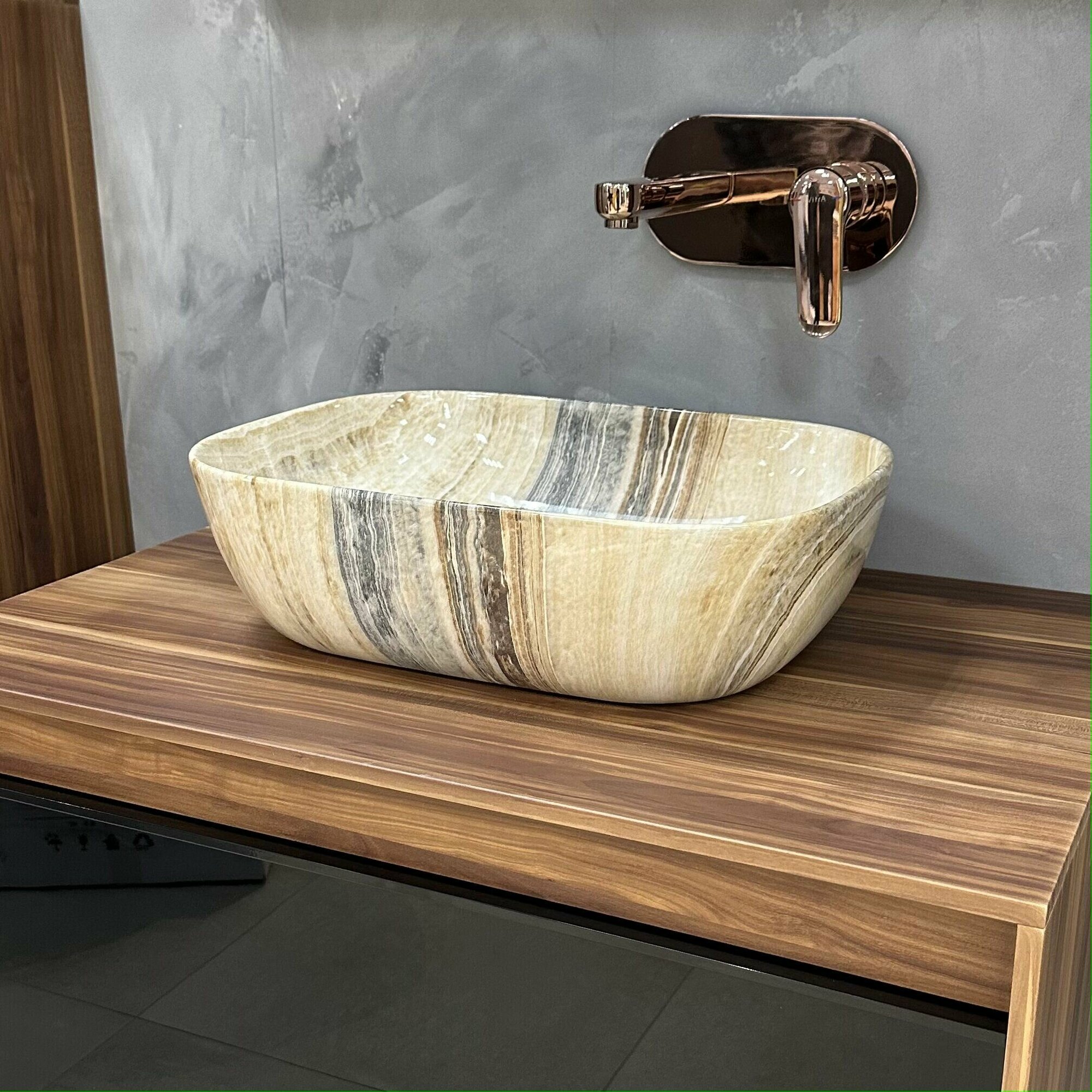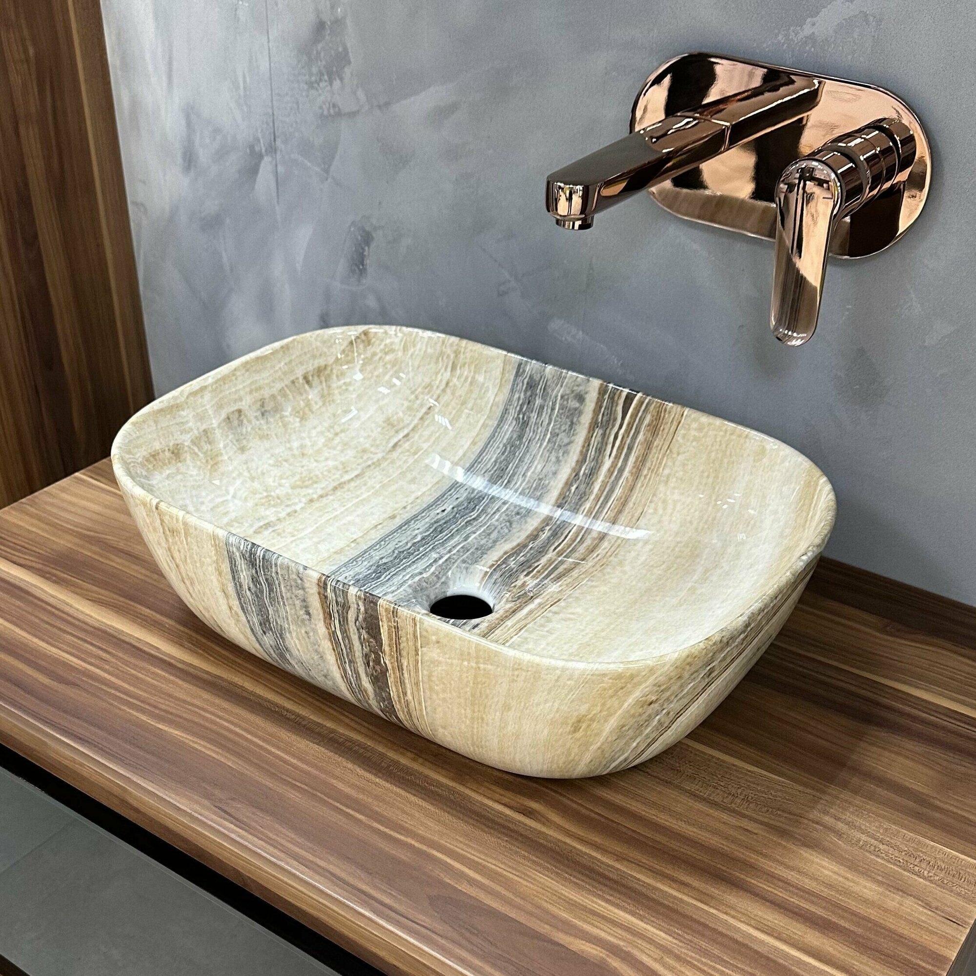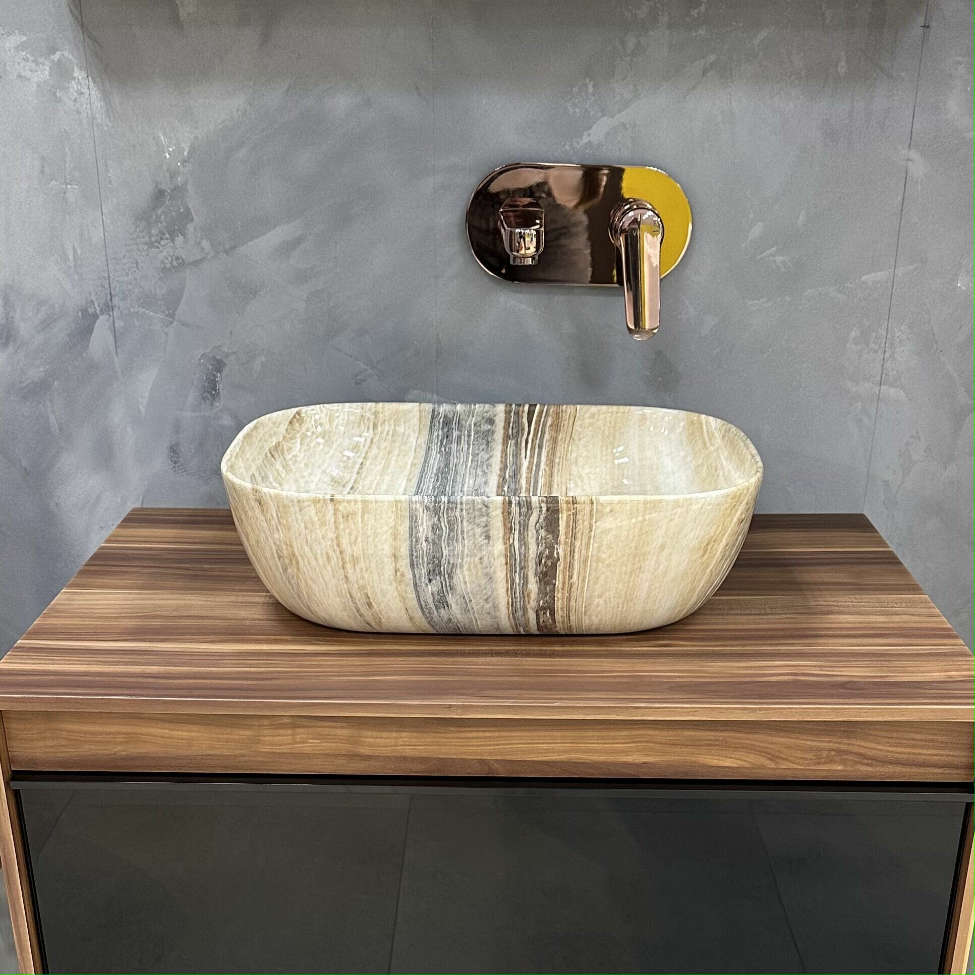 В данной модели используется глянцевая мраморная текстура раковины, которая несомненно впишется в любой дизайн и интерьер ванной комнаты. Будет смотреться стильно и дорого.