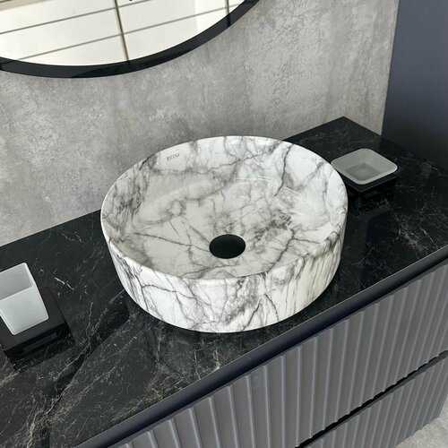 Представляем вашему вниманию прекрасную накладную раковину, которая станет стильным и практичным дополнением вашей ванной комнаты. Материал изделия высококачественный класс керамики - фарфор. Фарфор — это прочный материал, который обеспечивает долговечность мойки и защиту от повреждений. Устойчив к царапинам, сколам, и другим повреждениям, что делает его идеальным выбором для использования в ванных комнатах. Эта керамическая мойка в глянцевом мраморном цвете идеально впишется в любой интерьер, добавляя ему элегантности. Узкая форма позволяет сэкономить пространство, что делает ее отличным выбором для малых санузлов или комнат с ограниченной площадью. Чаша имеет глубокую конструкцию, обеспечивая удобство использования при умывании. Она отлично подходит под смеситель и легко устанавливается на столешницу или тумбу. Отсутствие отверстий дает возможность вам выбрать наиболее подходящий вариант крепления смесителя, что делает установку максимально удобной. Эта маленькая керамическая мойка предназначена не только для умывания, но и может быть использована в качестве дополнительной мойки рядом со стиральной машиной. Создайте функциональное и эстетически приятное пространство в вашем санузле с этой замечательной раковиной!