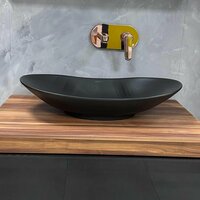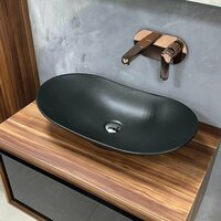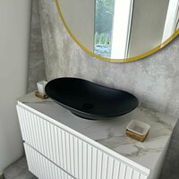 Накладная раковина REDO представлена в цвете чёрный матовый, идеально подходит для установки на столешницу, и на любые тумбы от 70 см, имеет размеры 640*360*135 мм.