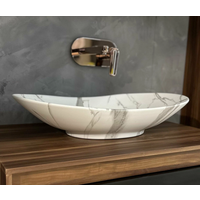 Накладная раковина REDO представлена в цвете матовый белый мрамор, идеально подходит для установки на столешницу, и на любые тумбы от 70 см, имеет размеры 640*360*135 мм.