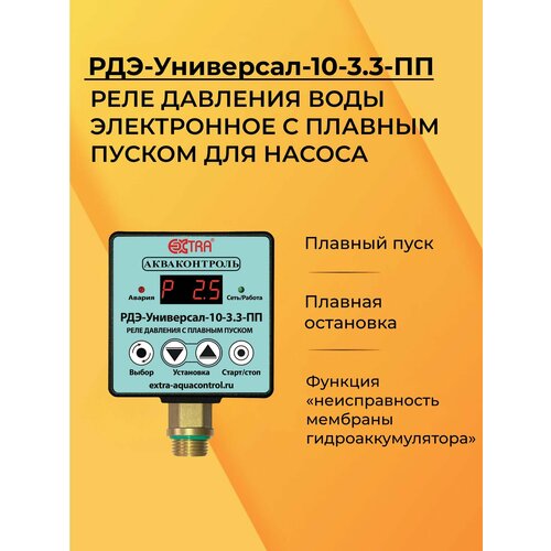 Реле давления воды электронное Универсал с плавным пуском для насоса РДЭ-Универсал-10-3.3-ПП EXTRA акваконтроль 1733150000: сравнение цен, характеристики, фото, актуальное наличие и цены.