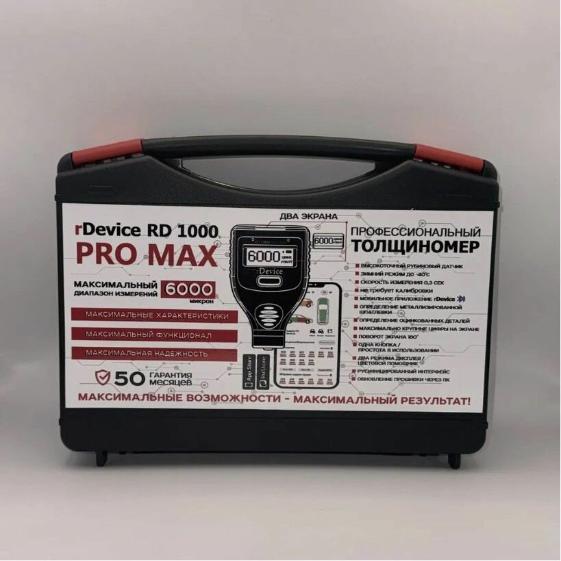 RDevice 1000 PRO MAX (подарочный кейс) толщиномер, диапазон от 0 до 6000 микрон, рубиновый датчик, магнитная шпатлевка, оцинковка, приложение для смартфона (все существующие опции, два экрана): сравнение цен, характеристики, фото, актуальное наличие и цены.
