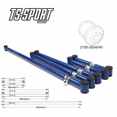 Усиленные продольные и поперечные штанги задней подвески на сайлентблоках 2108 (40/40), которые обеспечивают большую жёсткость, тем самым улучшают управляемость и устойчивость на дороге.
