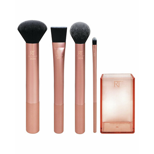Идеальный макияж в четыре шага с набором Flawless Base Set. Внутри: 1. Квадратная кисть для тональной основы Square Foundation Brush. Создает совершенное покрытие, выравнивая тон лица. 2. Кисть для консилера Detailer Brush. Помогает скрыть несовершенства кожи. 3. Кисть для контуринга Contour Brush. Корректирует овал лица, создавая плавные рельефы. 4. Кисть для нанесения пудры Buffing Brush. Идеальна для финального штриха. 5. Подставка для кистей. Кисти Real Techniques изготовлены из синтетического ворса — таклона. Алюминиевые ручки-основания удобны в использовании. Кисти подходят для любого типа кожи, не вызывают раздражений и аллергии. Легко моются, быстро сохнут, не линяют и не теряют своей формы.