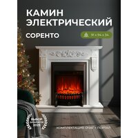 Купить Электрокамин Соренто белый с очагом Fobos, звук потрескивания дров, обогрев, имитация пламени с доставкой по всей России.