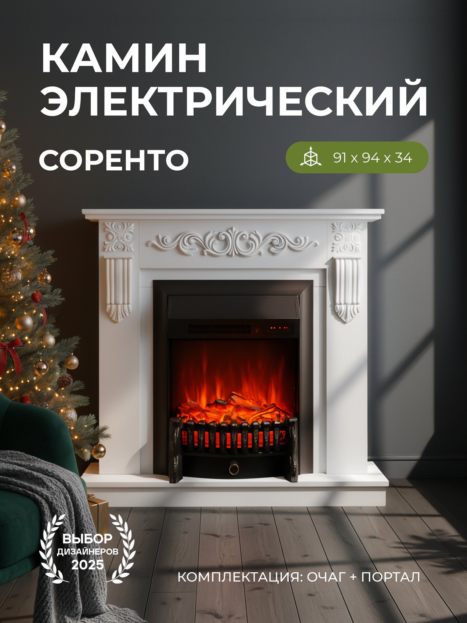 Электрокамин Соренто белый с очагом Fobos, звук потрескивания дров, обогрев, имитация пламени: сравнение цен, характеристики, фото, актуальное наличие и цены.