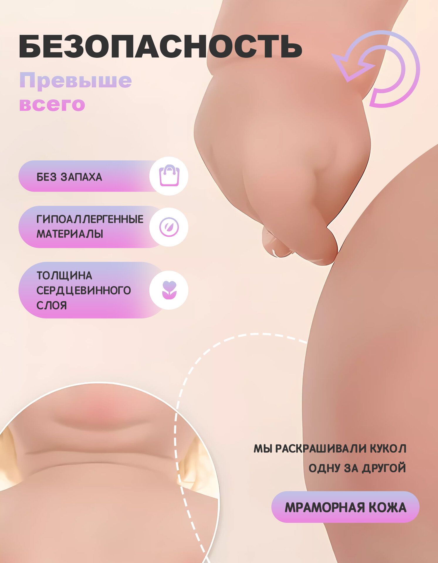 Особенности: Кукла отличается особенно высоким качеством, это не обычная кукла. Чтобы добиться эффекта приближения куклы к реальному ребенку, при производстве куклы используются импортные высококачественные красящие материалы, а цвет кожи прорисован в 3D, чтобы сделать куклу более нежной. Кровеносные сосуды и кожа куклы нарисованы очень реалистично, совсем как у настоящего младенца. Возьмите его домой, и вы найдете отличное соотношение цены и качества, даже больше, чем это значение