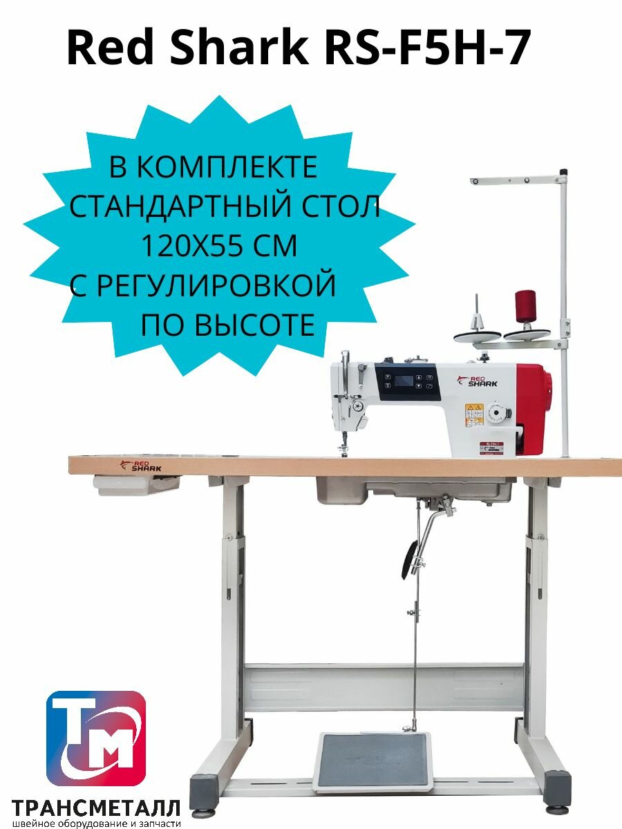 Прямострочная одноигольная машина челночного стежка RED SHARK RS-F5H-7 с плоской платформой, нижним транспортером и встроенным серводвигателем.