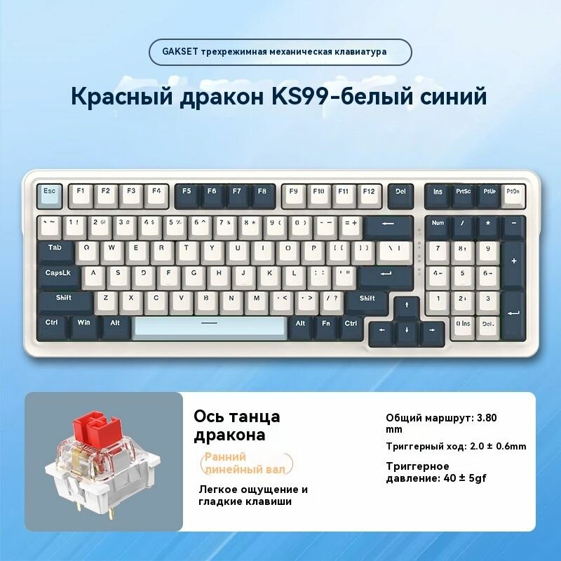 REDRAGON KS99-Трехрежимная механическая клавиатура Bluetooth с RGB-подсветкой, полноклавишная клавиатура из ПБТ с возможностью горячей замены: сравнение цен, характеристики, фото, актуальное наличие и цены.