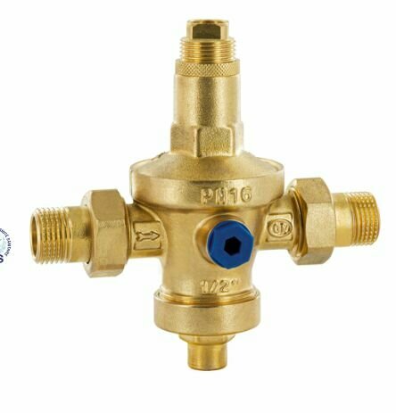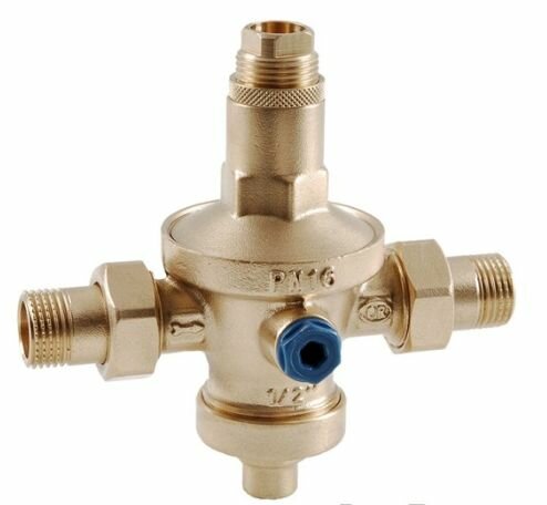 Принцип работы. Эластичная мембрана приводит в движение затвор в результате действия двух противоположных сил: снизу — давление воды в трубопроводе за редуктором (которое пытается закрыть клапан), сверху — воздействие пружины, заведенной с учетом рабочего давления, которое нужно поддерживать на требуемом уровне (пытается открыть клапан). Клапан открывается, когда, в результате выпуска воды через краны, снижается давление под мембраной и преобладает давление пружины; в тот момент степень открытия клапана пропорциональна расходу выпускаемой среды. По завершении слива, как только давление воды в нижней части трубопровода будет достаточным, чтобы противостоять давлению пружины, затвор поднимется, закрывая клапан. Регулировочное давление устанавливается путем завинчивания регулятора, который в той или иной степени сжимает пружину. Мембрана, приводящая в движение затвор, способна выдержать сильное противодавление на выходе, как пульсирующее (гидравлические удары), так и постоянное.