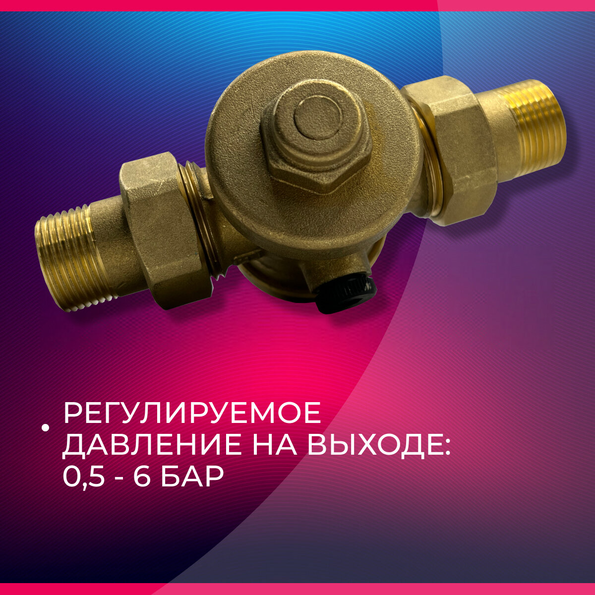 Купить Редуктор давления с американкой, латунный, PINTOSSI+C арт. 9014, НР, 25 бар, 3/4″ с доставкой по всей России.