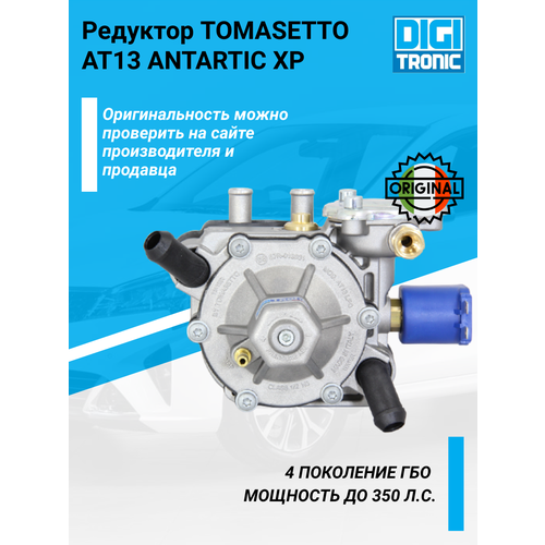 Оснащен двух-мембранной системой, которая позволяет увеличивать выходное давление газа при росте нагрузки на двигатель. Благодаря специальной дополнительной пластине и модернизированным контурам охлаждающей жидкости и газа, в АТ13 XP удалось добиться рекордных показателей по теплообмену и потоку газа среди всей линейки пропан-бутановых редукторов компании Tomasetto.