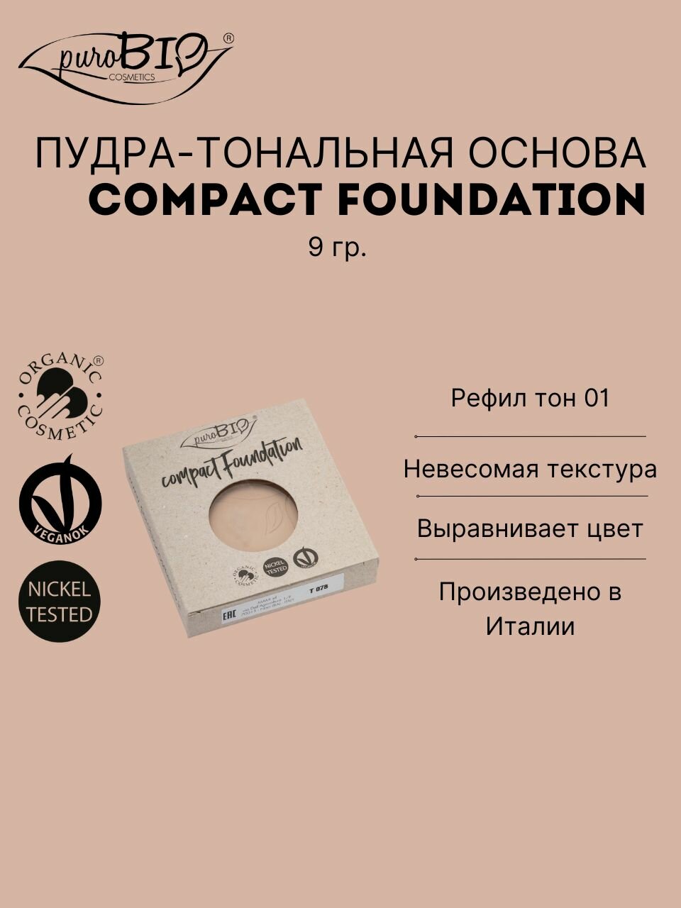 Купить Рефил пудра для лица компактная Compact Foundation тональная основа тон 01 PuroBio с доставкой по всей России.