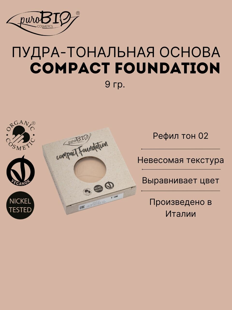 Купить Рефил пудра для лица компактная Compact Foundation тональная основа тон 02 PuroBio с доставкой по всей России.