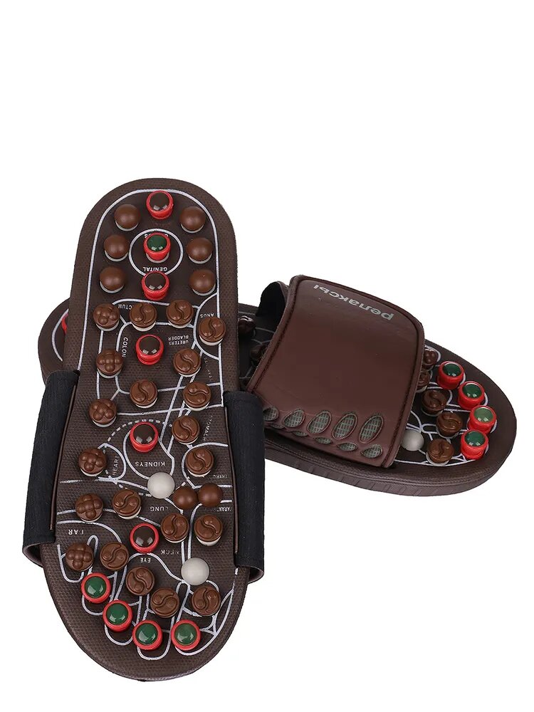 Массажные тапочки включают от 56 до 74 (в зависимости от размера) подпружиненных поворотных кнопок 5 видов, распределенных по различным точкам вашей стопы, из которых 10 снабжены насадками из нефрита и 10 насадками из турмалина, что отличает данную модель от других моделей. Каждая подпружиненная кнопка соответствует расположению биологически активных точек на стопе, которые отвечают за работу внутренних органов. Функциональность: Подвижные массажные кнопки, создают уникальное давление на акупунктурные точки стопы и улучшают Ваше здоровье пока Вы занимаетесь своими обычными делами дома, а также снимают усталость, улучшают кровообращение в стопе, регулируют внутренние функции организма. Используйте рефлекторные массажные тапочки 2-3 раза в день по 15 минут, когда Вы просыпаетесь утром, после ванны или в офисе, когда Вы хотите отдохнуть. При использовании массажные тапочек впервые, вы можете ощутить неудобство или даже боль, что является доказательством эффективности массажных тапочек. Продолжайте пользоваться и Вы почувствуете пользу и неудобство пройдет. Преимущества: - Регулируемая застежка-липучка - Особое расположение массажеров по точкам Вашей стопы - Отличная амортизация стопы - Износостойкая противоскользящая подошва - Модель унисекс подойдет как мужчинам, так и женщинам - Удобный размерный ряд и универсальный цвет. Размер: S- 26,5 M-27,5 см. L- 29 см. Материал: Подошва-ПВХ Верхняя союзка- экокожа