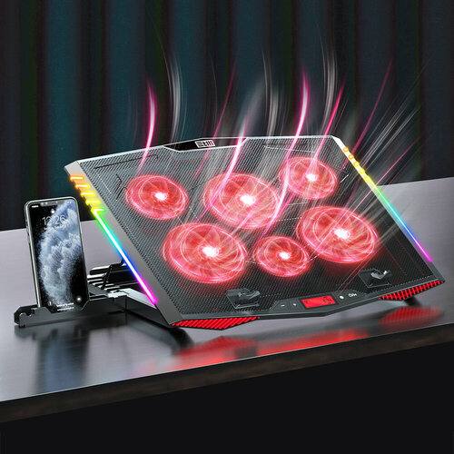 Купить Регулируемая мощная охлаждающая подставка для ноутбуков,6 вентиляторов, подсветка,7 углов наклона, держатель телефона,2 USB, для экрана 13″-19″, STM IP100 с доставкой по всей России.
