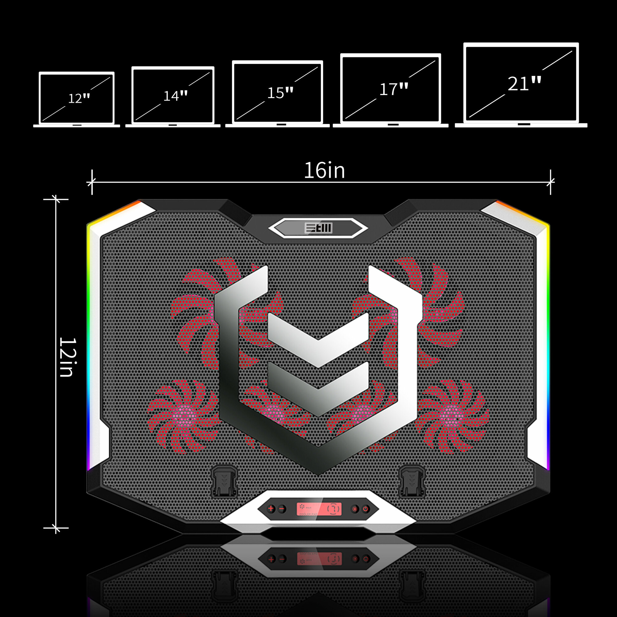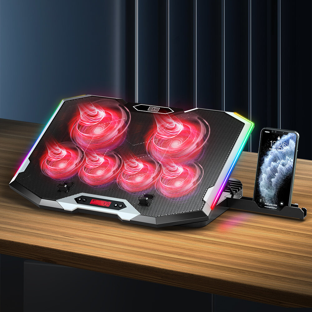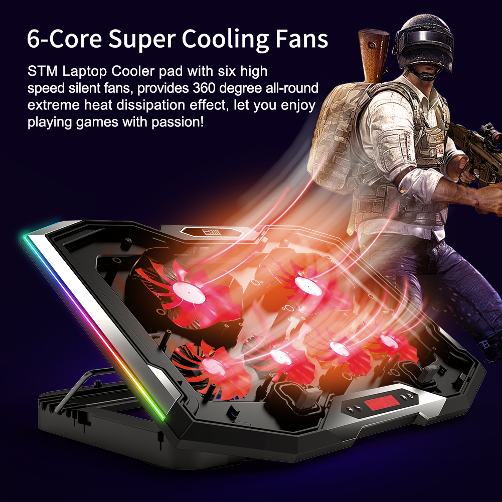 Регулируемая охлаждающая подставка для игровых ноутбуков,6 вентиляторов, подсветка, 6 углов наклона, держатель телефона, 2 USB , для экрана 13″-19″, STM IP99: сравнение цен, характеристики, фото, актуальное наличие и цены.