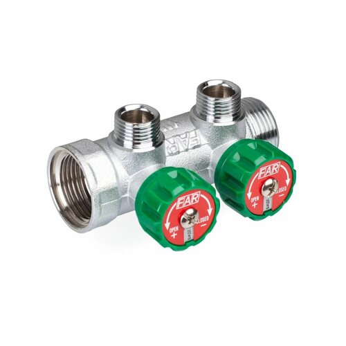Регулирующий коллектор FAR 1″ (ВР-НР) с 2 отв. 3/4″ НР (межосев. 45 мм), eurokonus: сравнение цен, характеристики, фото, актуальное наличие и цены.
