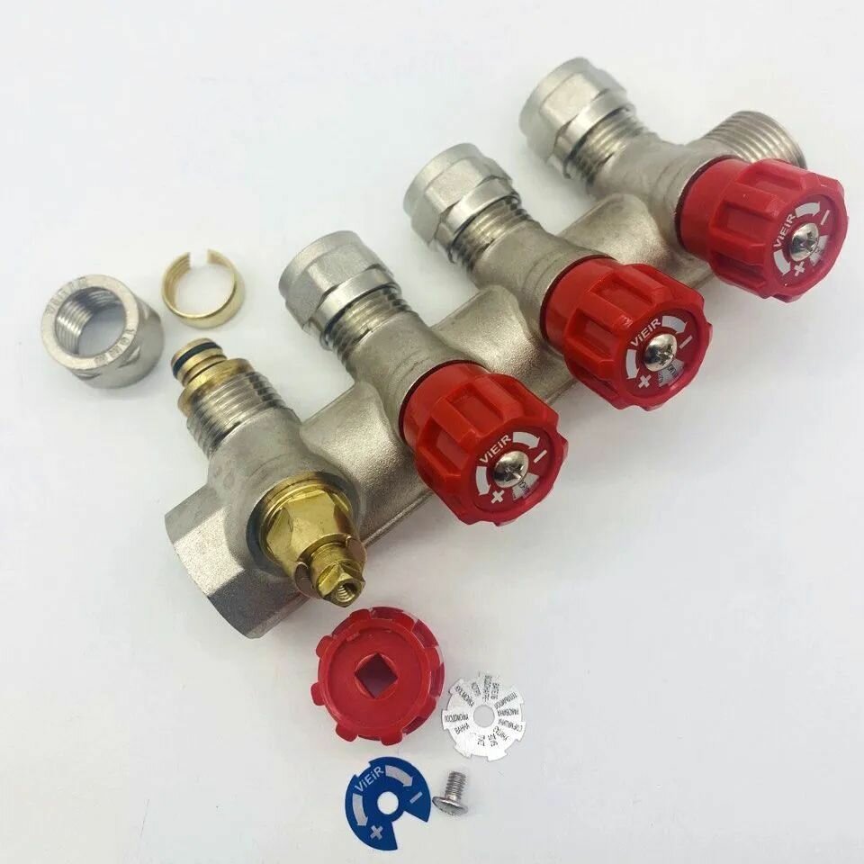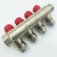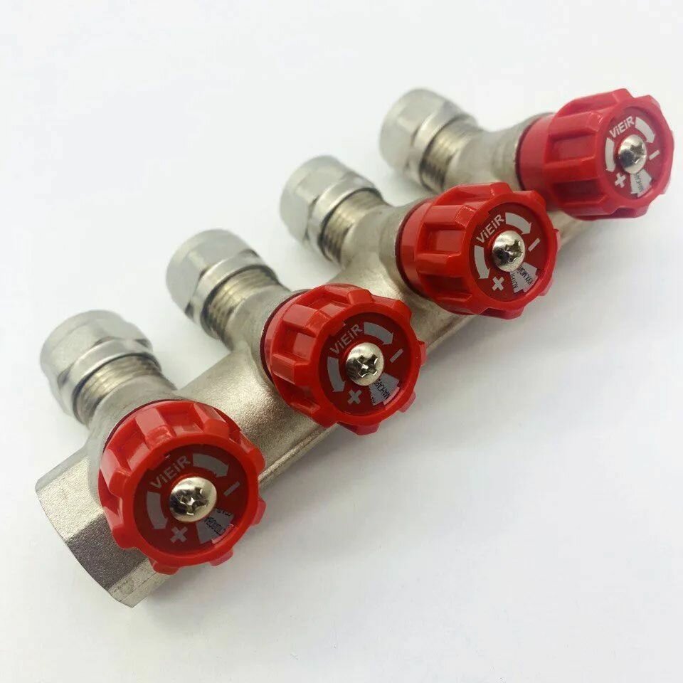 Купить Регулирующий коллектор с вентилями и цангами 4 выхода 1″x16 мм Vieir VR604 с доставкой по всей России.